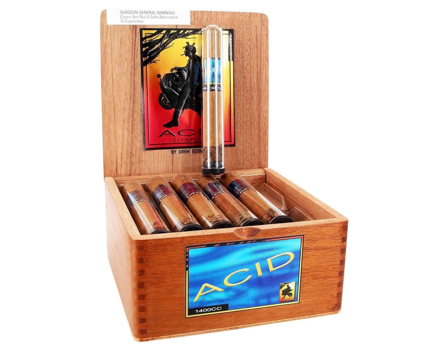 The Acid 1400CC is handcrafted in Esteli, Nicaragua by Drew Estate using a Connecticut Shade wrapper, Nicaraguan binder, and Nicaraguan filler tobaccos infused with botanicals and essential oils.