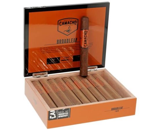 The Camacho Broadleaf Toro delivers rich notes of cedar and pepper. As it develops, leather, cocoa emerge, creating a complex and satisfying profile.
