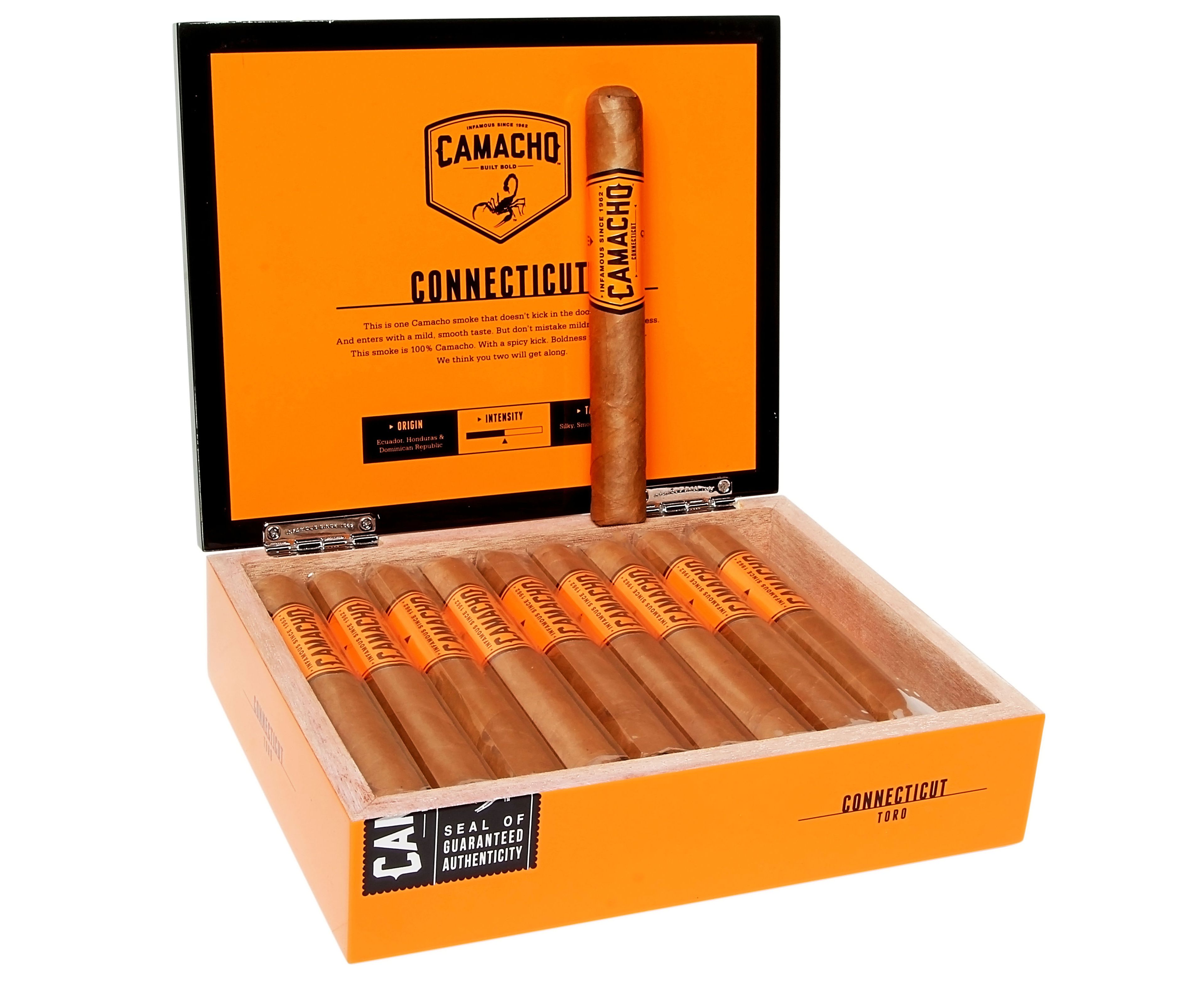 The Camacho Connecticut Toro delivers rich notes of cedar and pepper. As it develops, leather, cocoa emerge, creating a complex and satisfying profile.