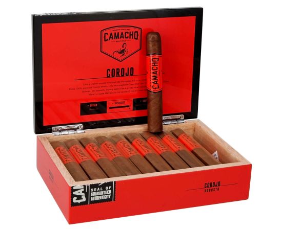 The Camacho Corojo is handcrafted in Honduras using Ecuadorian Habano, Ecuadorian Connecticut, Connecticut Broadleaf Maduro, Honduran Corojo wrapper, Honduras binder, and Honduras, Dominican Republic, Nicaragua filler tobaccos.