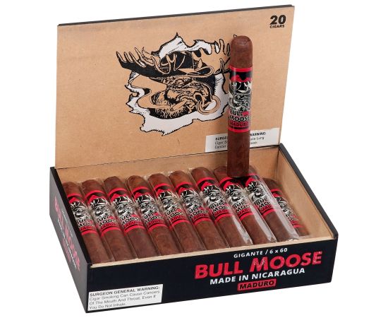 The Chillin' Moose Bull Moose Maduro Gigante is a dark Maduro-wrapped expression of the Chillin' Moose Bull Moose line.