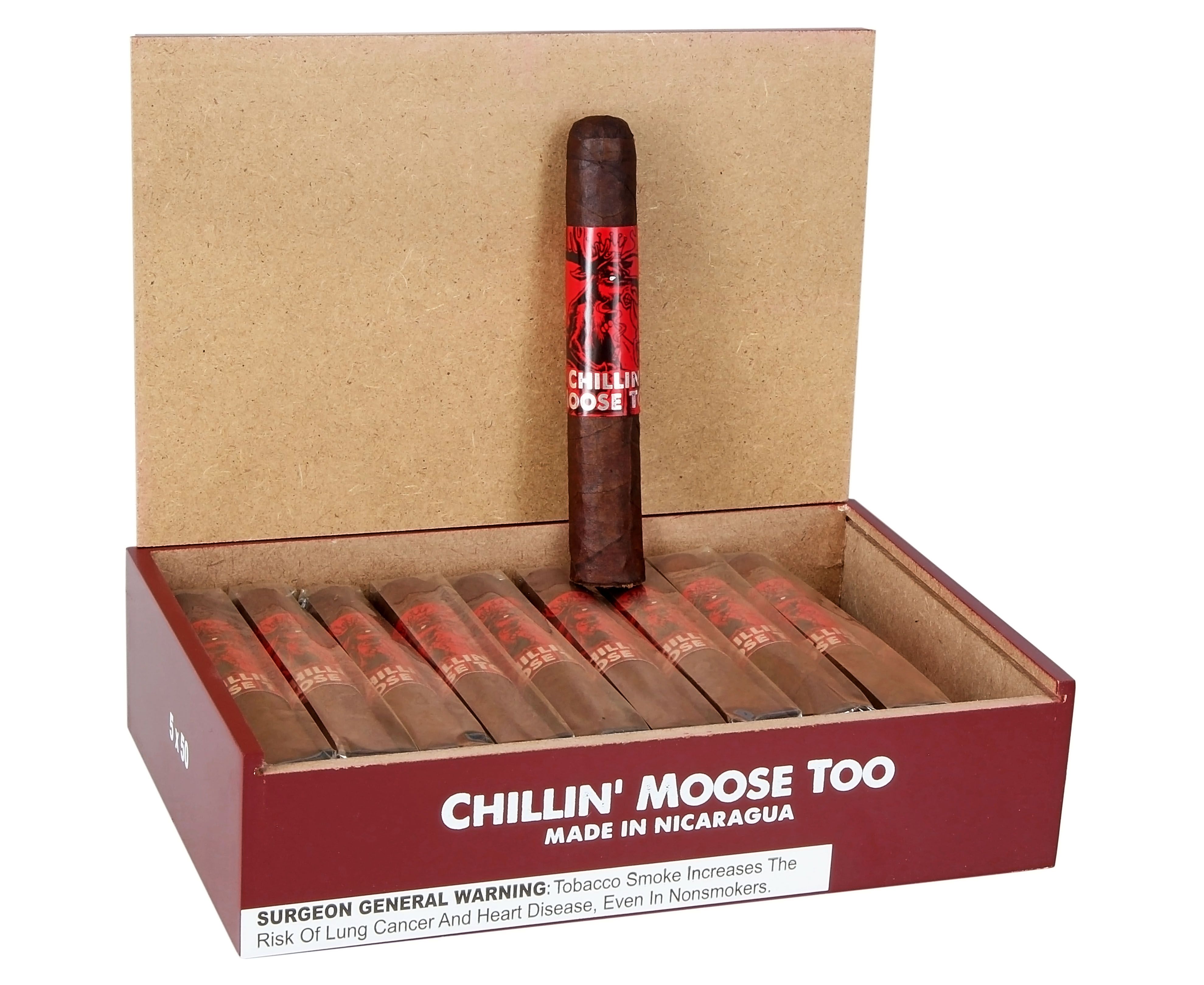 The Chillin' Moose Too Robusto is a medium-bodied follow-up to the original Chillin' Moose with a Honduran Habano wrapper.