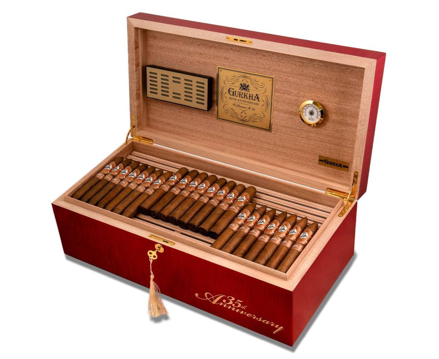 At 6 inches with a 52 ring gauge, the Gurkha 35Th Anniversary Humidor Cigar Set provides approximately 60-75 minutes of smoking time.