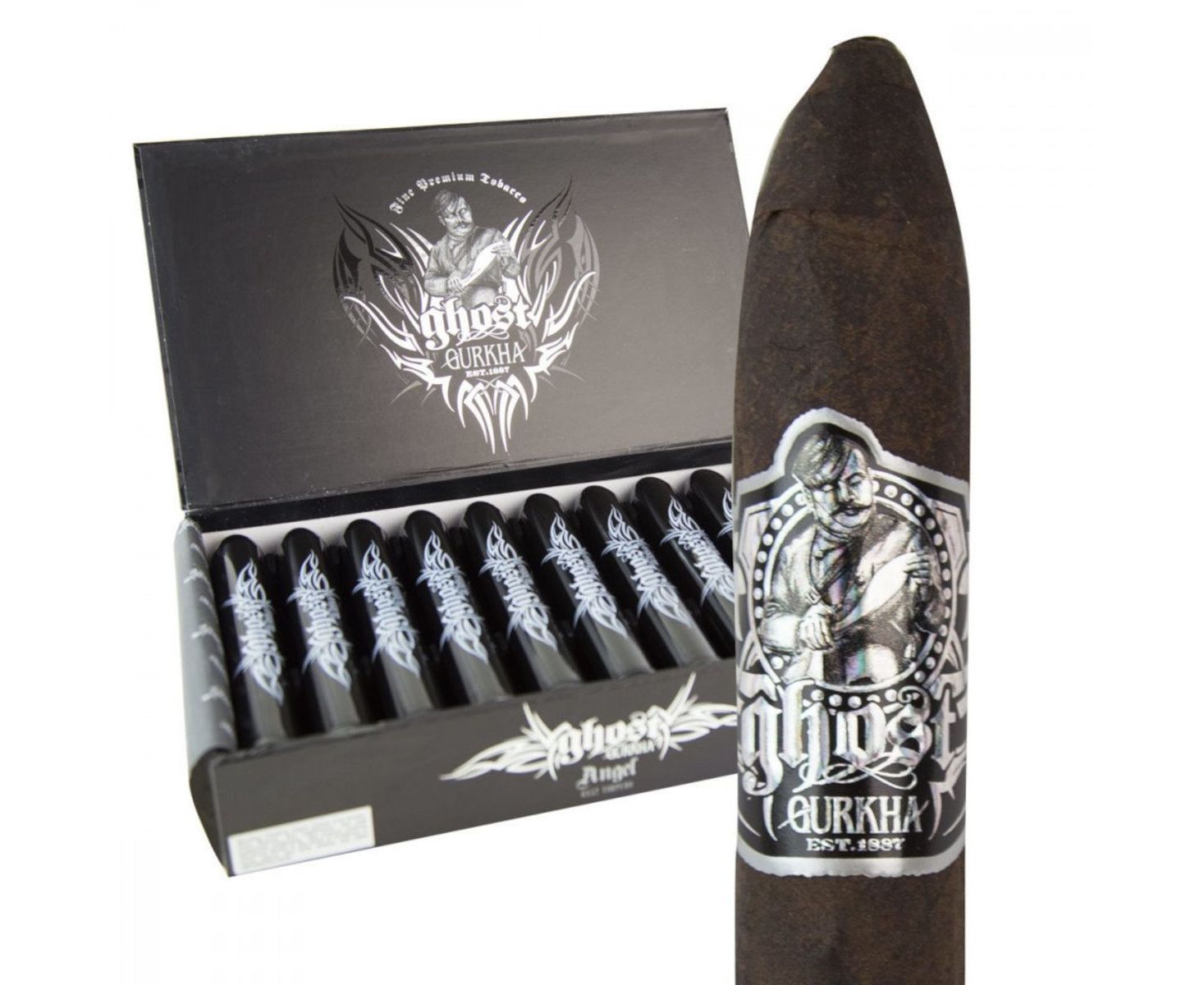 The Gurkha Ghost is handcrafted in Dominican Republic using Connecticut Shade wrapper, Dominican Republic binder, and Dominican Republic, Honduras, Nicaragua filler tobaccos.