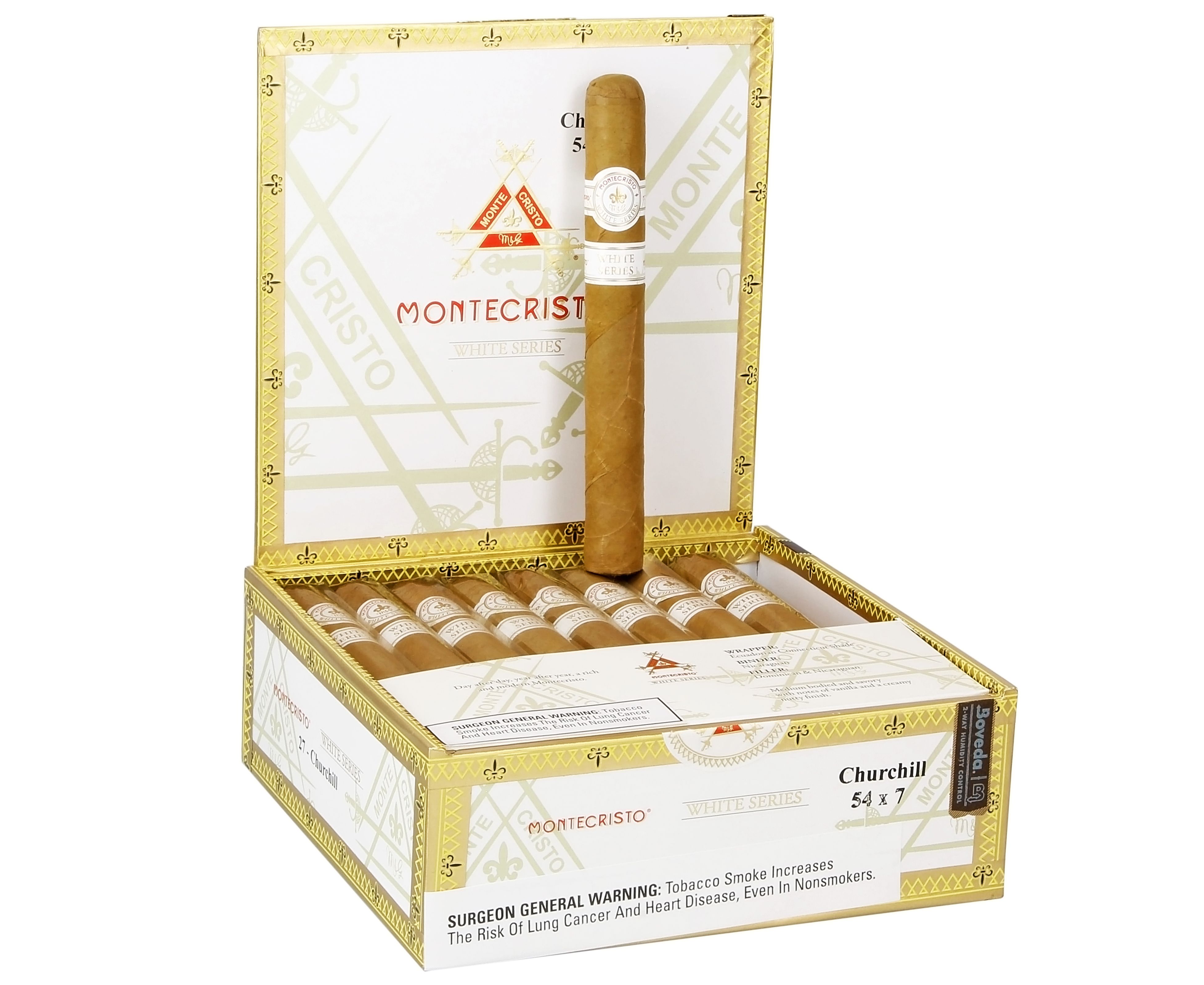 The Montecristo White Churchill 54X7 delivers rich notes of cream and cedar. As it develops, nuts, sweet spice emerge, creating a complex and satisfying profile.