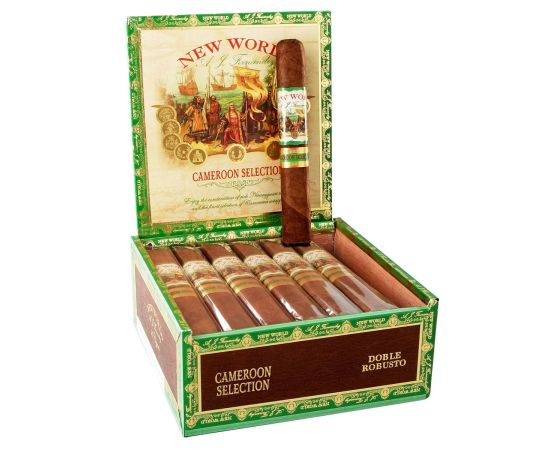 The New World Cameroon is handcrafted in Nicaragua using Ecuadorian Habano, Ecuadorian Connecticut, Connecticut Broadleaf Maduro wrapper, Nicaragua binder, and Nicaragua filler tobaccos.