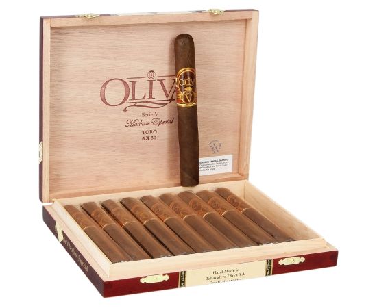 The Oliva Serie V Maduro Toro delivers rich notes of pepper and leather. As it develops, dark chocolate, cedar emerge, creating a complex and satisfying profile.