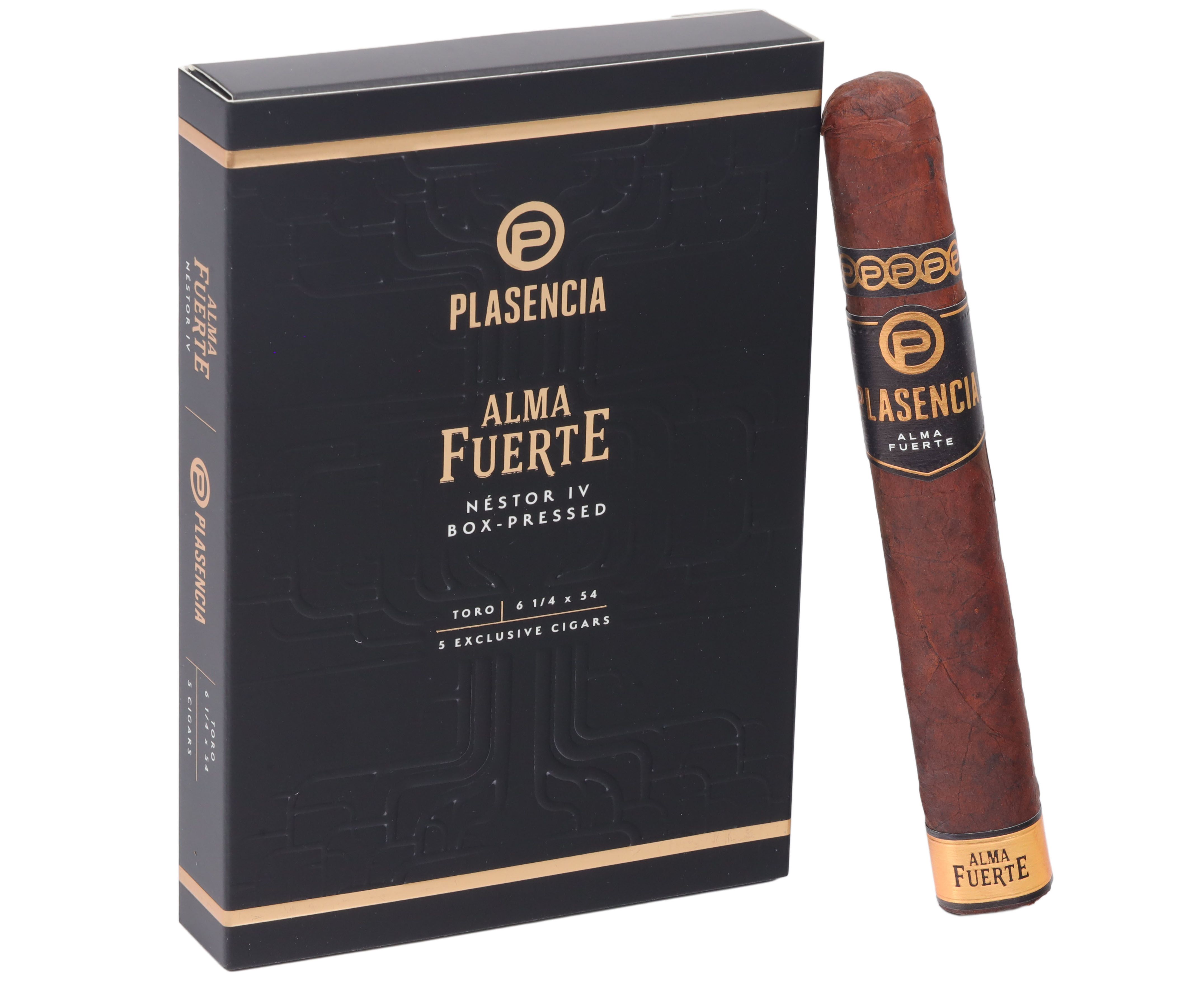 The Plasencia Alma Fuerte-Nestor IV 5/5pk Toro's full profile pairs excellently with single malt scotch, aged bourbon, or a robust port.
