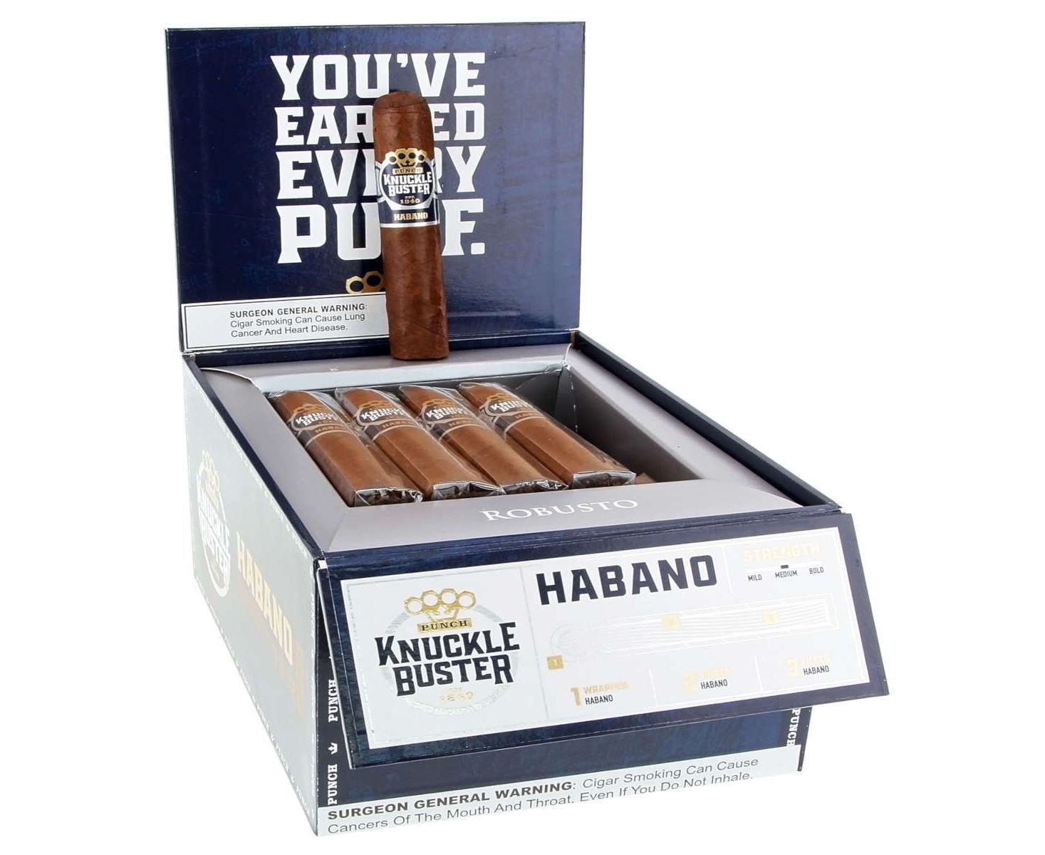The Punch Knucklebuster is rated Medium-Full strength. It's best suited for intermediate to experienced smokers who enjoy bolder flavors.