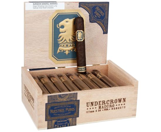 The Undercrown Maduro is handcrafted in Nicaragua using Mexican San Andres Maduro, Ecuadorian Connecticut Shade, Connecticut Broadleaf Maduro wrapper, Connecticut Stalk-Cut Broadleaf binder, and Honduras, Nicaragua filler tobaccos.